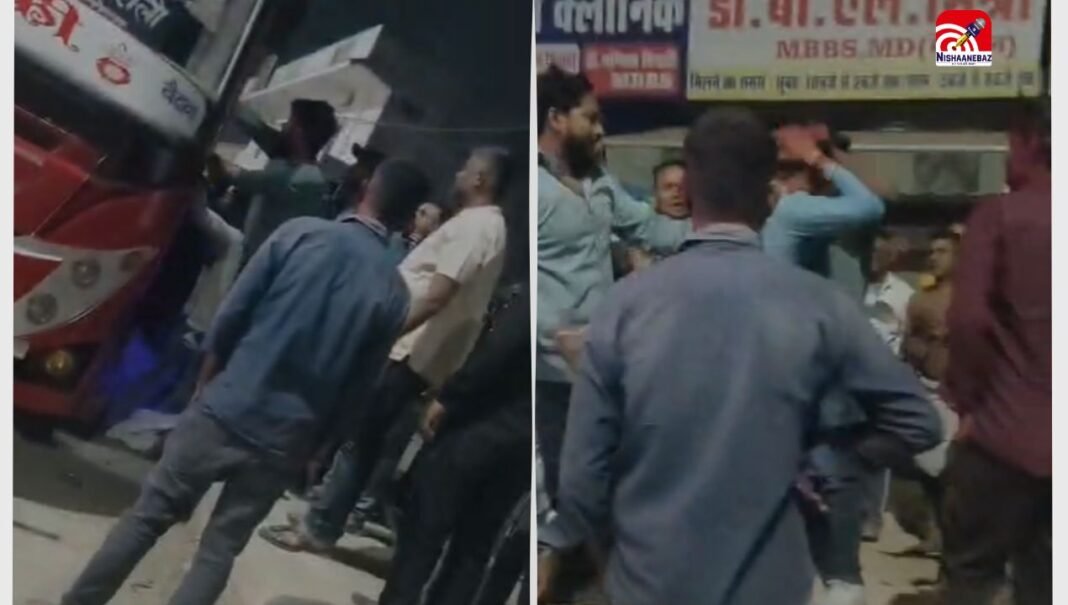 बस से उतारकर सड़क पर घेरकर की पिटाई