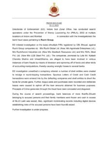 ईडी ने इस कार्रवाई को इंदौर और मुंबई में कई ठिकानों पर चलाया था। जांच एजेंसी ने बताया कि यह अभियान बैंकिंग धोखाधड़ी और वित्तीय गड़बड़ी की लंबी जांच का हिस्सा है।