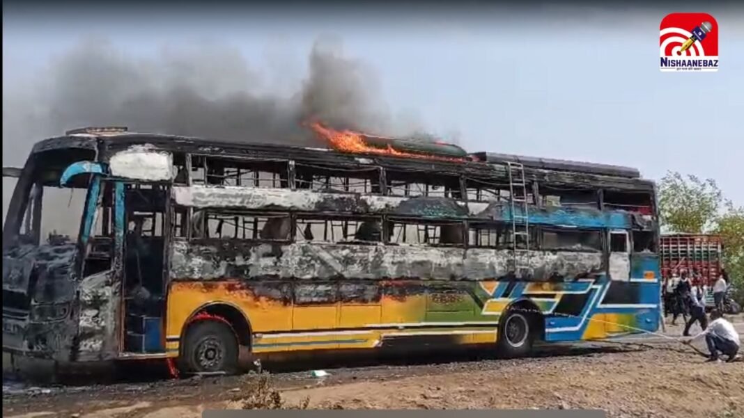 निशानेबाज न्यूज़ डेस्क : मध्य प्रदेश के शाजापुर जिले में आगरा-मुंबई नेशनल हाईवे-52 पर मंगलवार दोपहर एक बड़ा हादसा सामने आया। इंदौर से गुना बारात लेकर जा रही एक स्लीपर कोच बस में अचानक आग लग गई, जिससे देखते ही देखते पूरी बस आग की चपेट में आ गई।
