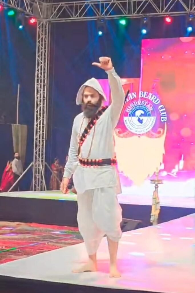 Shubham Jat Barwani Beard : बड़वानी/मुंबई (26 फरवरी 2026): मायानगरी मुंबई में आयोजित AIFA इंटरनेशनल फैशन शो एसोसिएशन एवं हिंदुस्तान बियर्ड क्लब के भव्य मंच पर बड़वानी के युवा शुभम जाट ने अपनी अनोखी प्रतिभा का लोहा मनवाया है। 21 और 22 फरवरी को हुए इस प्रतिष्ठित आयोजन में शुभम ने न केवल ‘बियर्ड’ (दाढ़ी) का खिताब जीता, बल्कि अपनी सांस्कृतिक प्रस्तुति से सबका मन मोह लिया।