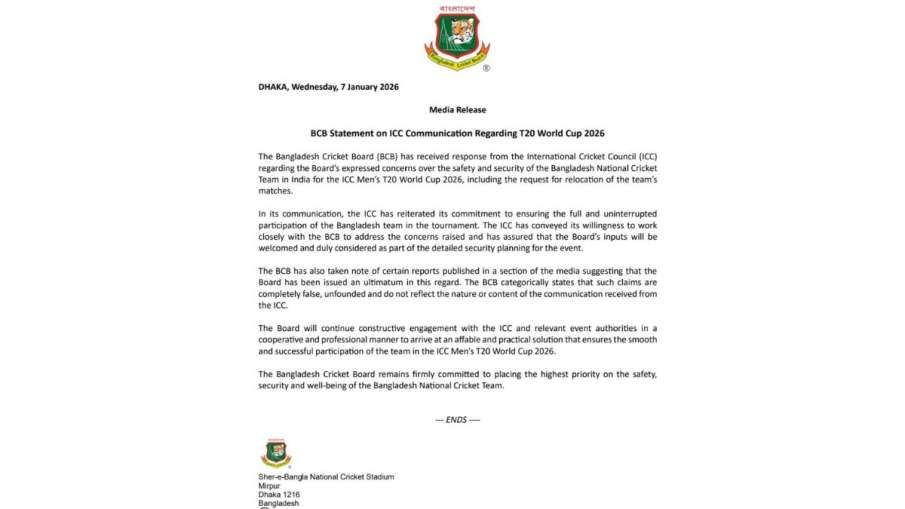 BCB के अनुसार, ICC ने यह भी कहा है कि वह आयोजन से जुड़े हर पहलू पर बांग्लादेश बोर्ड के साथ मिलकर काम करने को तैयार है। यदि टीम की ओर से कोई सुझाव या इनपुट आता है, तो उस पर गंभीरता से विचार किया जाएगा। हालांकि, अब तक ICC की तरफ से इस मुद्दे पर कोई सार्वजनिक बयान जारी नहीं किया गया है।