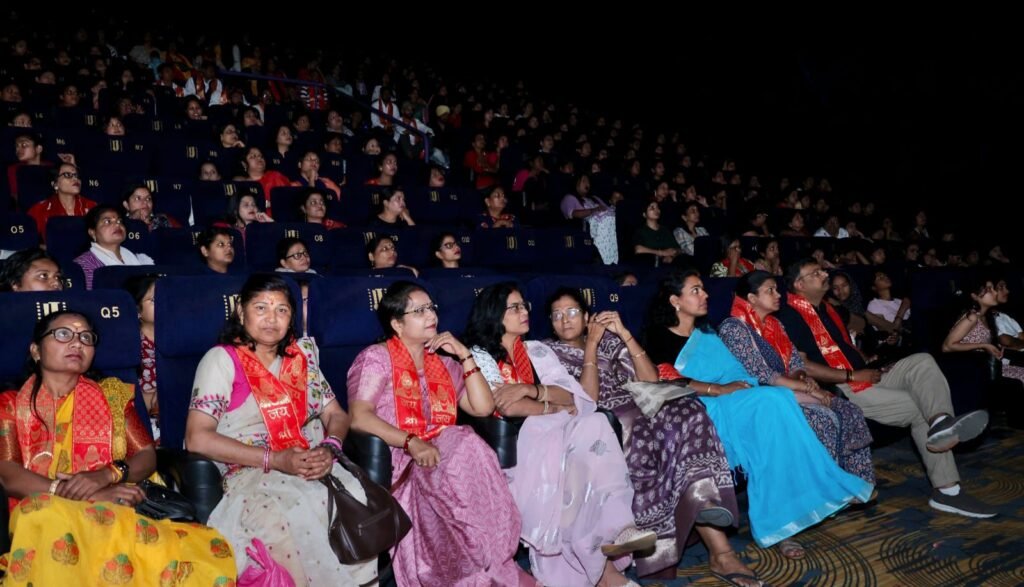 The Kerala Story 2 Women Empowerment : भोपाल। राजधानी के ज्योति सिनेप्लेक्स (ज्योति टॉकीज) में रविवार को एक अनूठा और प्रेरणादायक दृश्य देखने को मिला। परिवर्तन सहयोग समिति एवं भारतीय नव वर्ष उत्सव समिति के संयुक्त तत्वावधान में मातृशक्ति और बालिकाओं के लिए फिल्म “द केरला स्टोरी 2” का एक निशुल्क विशेष प्रसारण आयोजित किया गया। इस कार्यक्रम में लगभग 400 सनातनी बहनों ने एक साथ फिल्म देखी, जिसका मुख्य उद्देश्य समाज में महत्वपूर्ण विषयों के प्रति जागरूकता फैलाना और महिलाओं के बीच सकारात्मक संवाद को बढ़ावा देना था।