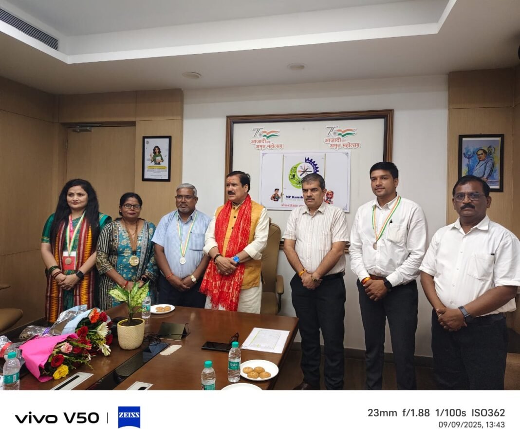 भोपाल। मध्यप्रदेश के कौशल विकास संचालनालय के तीन प्रशिक्षण अधिकारियों को राष्ट्रीय शिक्षक पुरस्कार 2025 से सम्मानित किया गया है। यह प्रदेश के लिए गर्व का क्षण है, जो यह दर्शाता है कि कौशल विकास विभाग शिक्षा और व्यावसायिक प्रशिक्षण के क्षेत्र में राष्ट्रीय स्तर पर उत्कृष्टता का मानक स्थापित कर रहा है।
