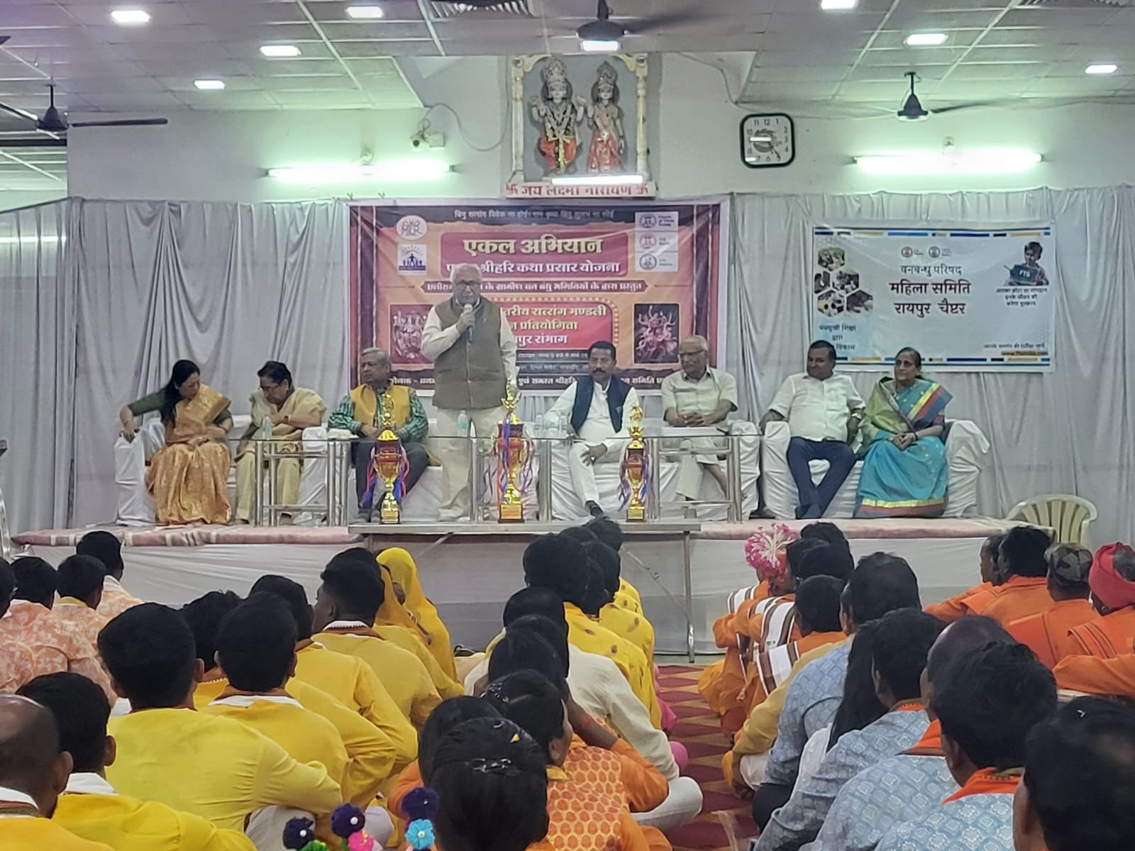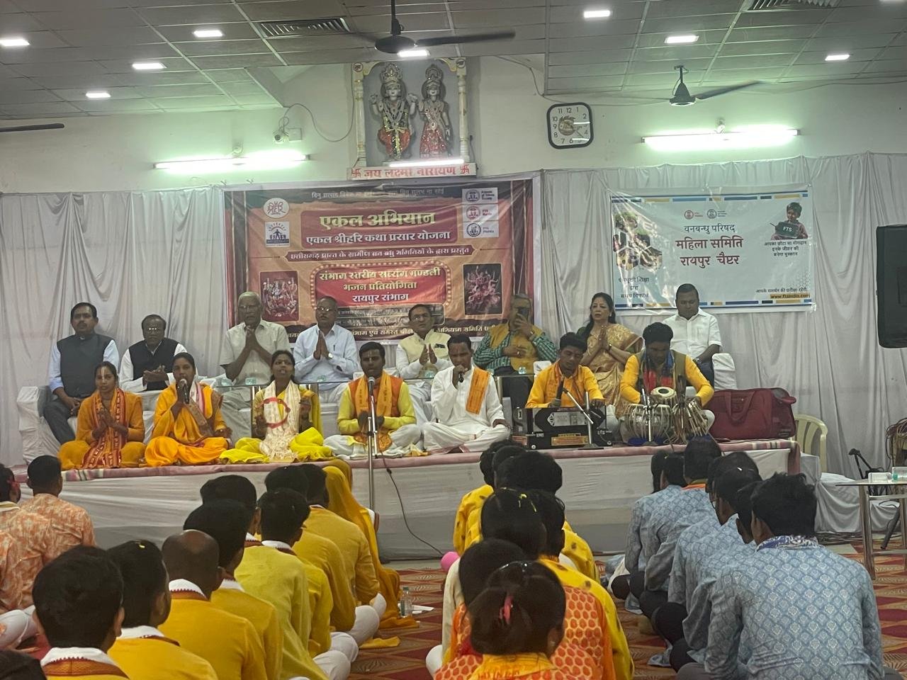 Van Bandhu Parishad Bhajan Competition : रायपुर (24 फरवरी 2026): वन बंधु परिषद द्वारा संचालित ‘एकल श्रीहरि कथा प्रसार योजना’ के तहत पिछले तीन महीनों से चल रही भजन-सत्संग प्रतियोगिता का भव्य समापन आज राजधानी रायपुर के फाफाडीह स्थित पाटीदार भवन में हुआ। इस संभाग स्तरीय फाइनल मुकाबले में सूरजपुर की टीम ने अपने उत्कृष्ट प्रदर्शन से प्रथम स्थान प्राप्त कर जीत का परचम लहराया।