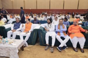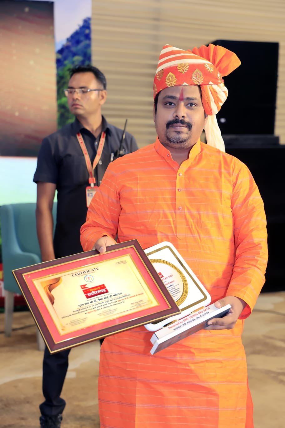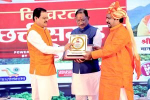 रायपुर। राजधानी स्थित एक प्रतिष्ठित निजी होटल में आयोजित ‘निखरता छत्तीसगढ़ कॉन्क्लेव 2025’ में माँ मातंगी धाम के पीठाधीश्वर डॉ. प्रेमसाई जी महाराज को 11,000 किलो सूखी लाल मिर्च से माँ बगलामुखी महायज्ञ का भव्य अनुष्ठान कर विश्व कीर्तिमान स्थापित करने पर मुख्यमंत्री द्वारा सम्मानित किया गया। इस विशेष आयोजन में छत्तीसगढ़ की कई जानी-मानी हस्तियाँ मौजूद रहीं।
